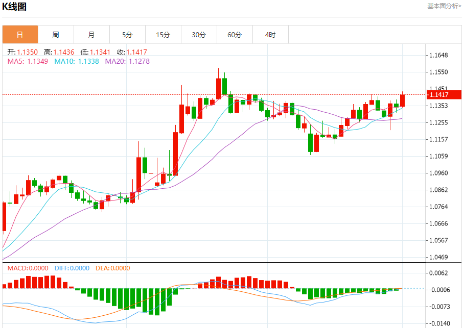 欧元/美元:截止北京时间20:28,欧元/美元上涨,现报1.1419,涨幅0.63%。纽市盘前,(欧元兑美元)的价格在最近的盘中交易中扩大了涨幅,达到了我们上午的目标,并攻击了1.1420的关键阻力,这是由其在EMA50上方的交易支撑的,其交易伴随着短期的小牛市趋势线。