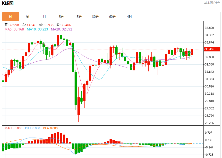 现货白银:截止北京时间20:28,现货白银上涨,现报33.418,涨幅1.38%。纽市盘前,在达到夸张的超卖水平后,白银价格在最近的盘中交易中稳定上涨,在短期基础上从看涨趋势线获得积极动力,伴随着(RSI)上积极信号的出现,这增加了积极动力,使价格超过了EMA50的阻力,超过了其负面压力。