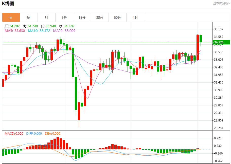 现货白银:截止北京时间20:20,现货白银下跌,现报34.223,跌幅1.46%。纽市盘前,(白银)的价格在波动交易中小幅上涨,受到其EMA50上方交易的支撑,另一方面,在看涨趋势的主导地位和沿偏向线交易的情况下,关键阻力位在34.50美元的稳定性降低了价格的涨幅,随着(RSI)负面信号的出现,在达到超买区域后,价格试图卸载这种超买情况。