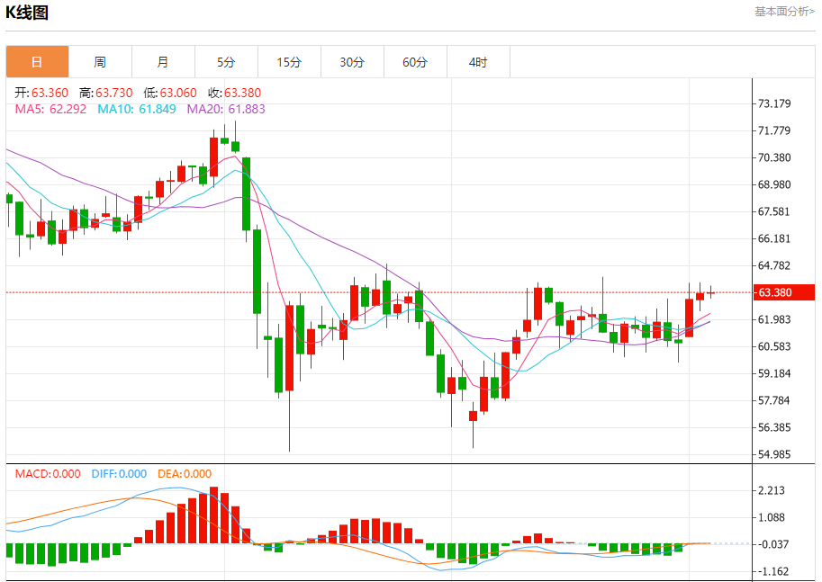 原油市场:截止北京时间20:19,美油下跌,现报63.360,跌幅0.06%。纽市盘前,(原油)价格在最近的盘中交易中上涨,准备攻击63.50美元的顽固阻力位,在成功摆脱超买状态后,在短期看涨修正趋势占主导地位以及沿着一条斜线交易的情况下,利用其在EMA50上方的连续交易,加强了积极情景的稳定性。