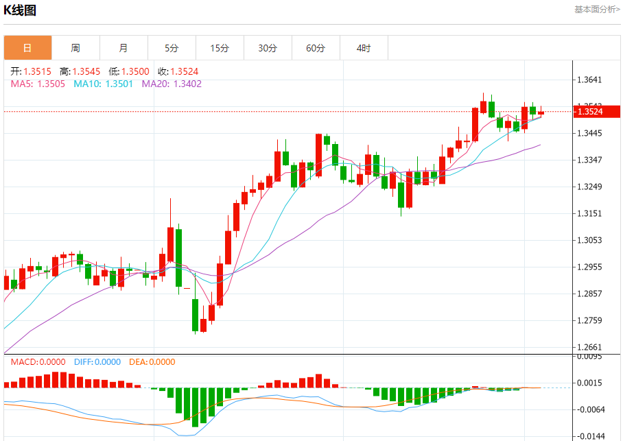 英镑/美元:截止北京时间20:19,英镑/美元上涨,现报1.3526,涨幅0.07%。纽市盘前,(GBPUSD)价格在最后一个交易日上涨,利用其在EMA50上方的稳定性,这提供了动态支持,帮助其实现最后的收益,继续交易,短期内略有看涨。