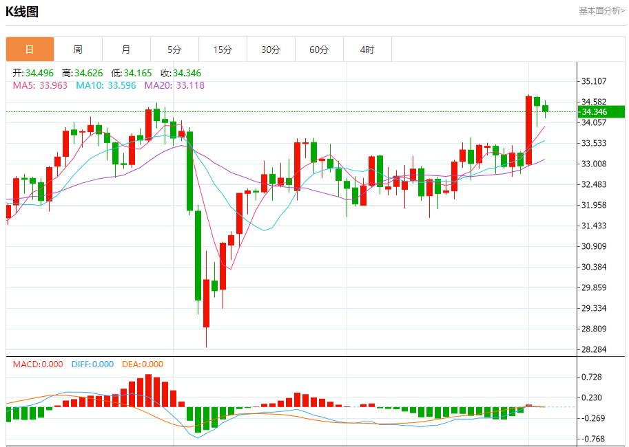 现货白银:截止北京时间20:19,现货白银下跌,现报34.342,跌幅0.43%。纽市盘前,(白银)的价格在最后一个盘中交易中在窄幅区间内平静交易,试图获得积极的势头,这可能有助于其突破 34.50 美元的关键阻力位,在其 EMA50 上方的交易受到支撑,并在短期内的主要看涨趋势下沿着偏置线, 另一方面,我们注意到 (RSI) 上开始出现负面信号,除非突破该阻力位,否则这些信号会减慢价格的上涨速度。
