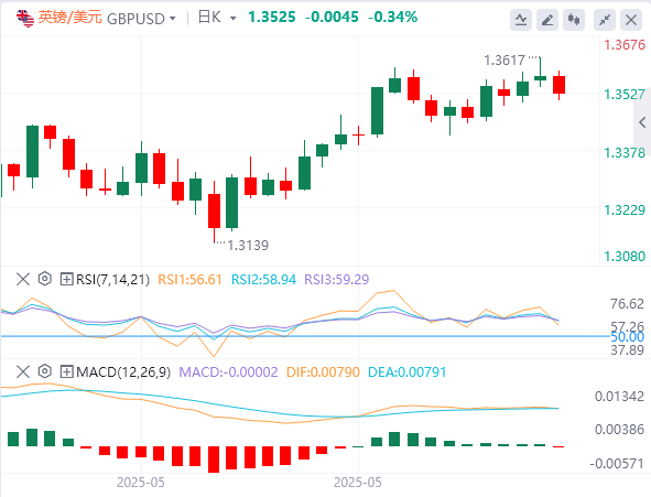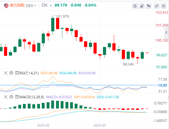 美元指数:截止发稿,美元指数徘徊在99.17附近。美元兑其他主要货币上周五上涨0.47%,收报99.20,因为数据显示美国5月份就业增长好于预期,尽管增速比上月有所放缓,这表明美联储可能会等待更长时间再降息。此外,美元一直受到特朗普总统的关税政策和与包括中国在内的贸易伙伴谈判前景的不确定性、美国参议院在众议院通过赤字支出和税收法案后正在审议的法案以及近期经济数据轨迹的拖累。技术面上,美元指数正试图收于阻力位99.00–99.20上方。如果这次尝试成功,美元指数将向下一个阻力位100.20–100.40移动。