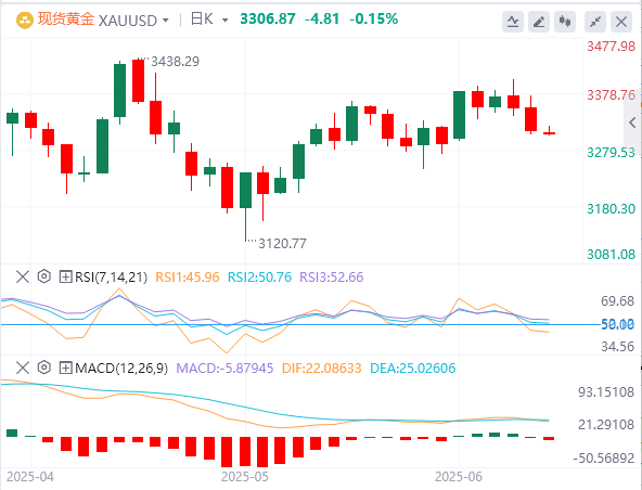 技术面:黄金买家必须在日/周收盘价高于23.6%斐波拉契阻力位3377美元/盎司,才能恢复最近的上升趋势,并涨向历史高点3500美元/盎司;在此之前,买家必须攻克5月份的高点3439美元/盎司。下行方面,一旦金价跌破下行趋势线阻力位-支撑位3318美元/盎司,卖家可能尝试控制局势。金价下一个强有力的支撑位见于上述汇合处3297美元/盎司。若黄金进一步下跌,金价将挑战50日移动均线3262美元/盎司;假如跌破该水平,买家的最后一道防线是3232美元/盎司,即上述升势的50%斐波那契水平。