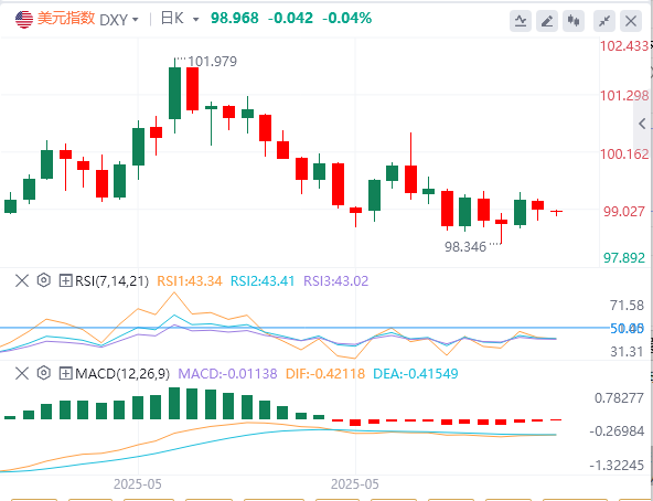 美元指数:截止发稿,美元指数徘徊在98.96附近。美元指数周一小幅下跌,从上周五的反弹高点回落,但仍高于98.351和97.921关键技术支撑位。这一温和下跌反映出美元动能的暂时休整,市场在中美贸易谈判于伦敦开启前转为谨慎。由于预计美联储不会有重大政策转变,且全球增长风险与贸易紧张局势挂钩,美元走势在通胀数据确认和贸易问题解决前,料维持区间波动至看空基调。技术面上,如果美元指数收于99.00水平以下,它将朝着最近的支撑位前进,即位于98.00–98.20区间。