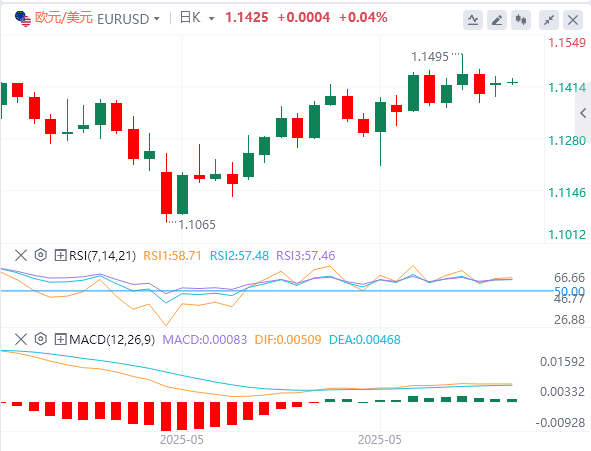 欧元:截止发稿,欧元/美元徘徊于1.1425附近。欧元/美元在周一上涨,受到在英国举行的高层中美关税谈判带动的乐观市场情绪的推动。这加上欧洲央行(ECB)被视为“鹰派”的降息,使该货币对突破1.1400。在欧元区(EU),经济日程稀缺,但欧洲央行官员,包括德国联邦银行行长约阿希姆·纳格尔、欧洲央行的伊莎贝尔·施纳贝尔和卡齐米尔,表示应对利率保持灵活。纳格尔表示,欧洲央行应对利率保持灵活,施纳贝尔指出,欧洲央行不应期待与美联储的持续脱钩。卡齐米尔则转为鹰派,表示中央银行几乎或已经接近宽松周期的结束。技术面上,如果欧元/美元成功收于阻力位1.1410–1.1425上方,它将走向下一个阻力位1.1555–1.1570。