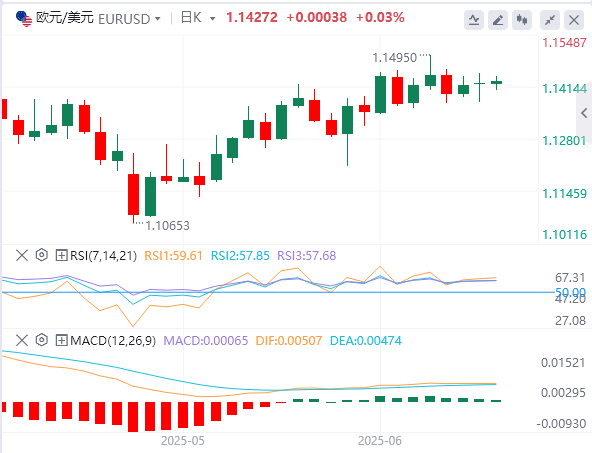欧元/美元在周二收盘基本持平后,周三在欧洲早盘在1.1400附近继续横盘整理。