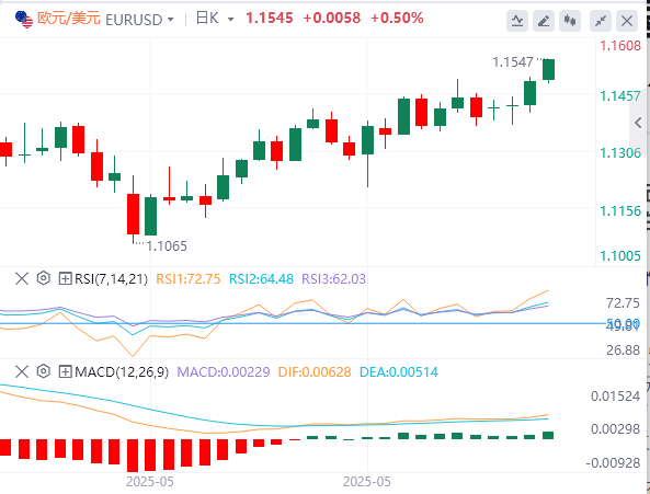 欧元/美元周四欧洲早盘徘徊在1.1500上方的七周高点附近,延续了周三0.50%的涨幅。