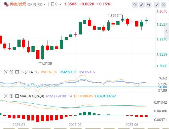 英镑/美元在1.3600附近再次面临阻力后回落至1.3550。英镑在4月份受到英国经济收缩幅度大于预期的打击。