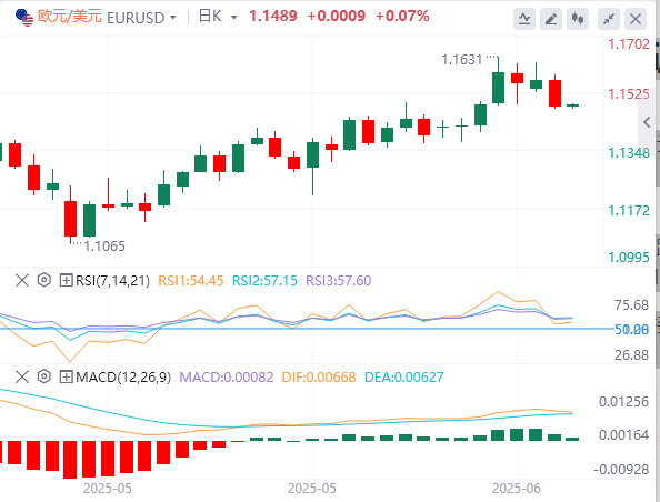 欧元:截止发稿,欧元/美元徘徊于1.1489附近。随着以色列和伊朗之间的敌对行动开始,欧元/美元在上周五下跌0.25%后回升,这提振了美元的吸引力。尽管如此,由于双方将继续交锋,并且演变为地区冲突的风险略有降低,风险偏好的改善支撑了欧元。技术面上,跌破50MA1.1483将推动欧元/美元走向最近的支撑位1.1410–1.1425。