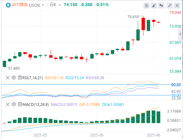 周四亚盘,原油交投74.15附近。对美国可能卷入中东战争的担忧正在提振油价。原油期货因对供应中断的担忧而上涨。伊朗驻联合国大使誓言,如果美国卷入战争,将做出强烈回应。