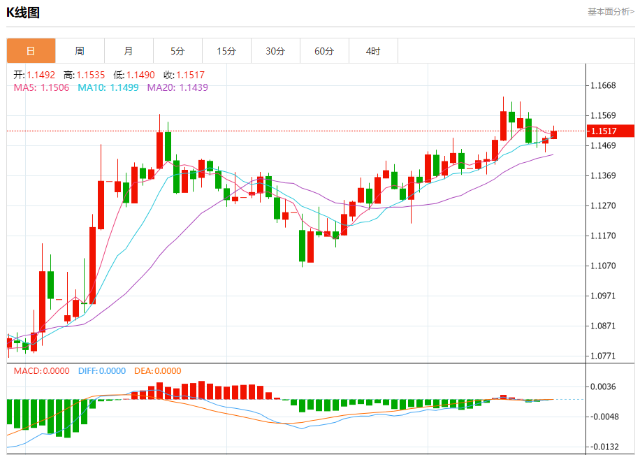 欧元/美元:截止北京时间20:23,欧元/美元上涨,现报1.1518,涨幅0.21%。纽市盘前,(欧元兑美元)的价格以其最近的盘中水平的上涨结算,受到其在EMA50上方交易的支持,并在短期基础上的主要看涨趋势和沿着一条斜线交易的主导下,另一方面,与价格走势相比,(RSI)达到超买水平,这可能会暂时减缓即将到来的涨势。