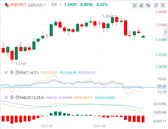 英镑:截止发稿,英镑/美元徘徊于1.3420附近。在周末加入了以色列和伊朗之间的冲突,美国战机和潜艇瞄准了伊朗在伊朗的三个设施,即福尔多、纳坦兹和伊斯法罕。特朗普表示,伊朗的主要核浓缩设施已被“完全摧毁”,并警告称,除非伊朗同意和平,否则将发动“更严重”的袭击。技术面上,英镑/美元最近的支撑位位于1.3420–1.3440区间。跌破1.3420水平将推动英镑/美元跌至下一个支撑位1.3260–1.3280。