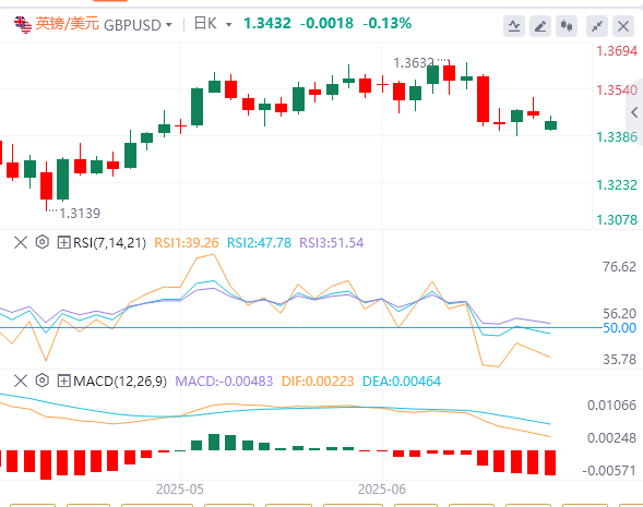 英镑/美元在前一周下跌了近1%,并在周一的亚洲时段小幅走低。该货币对从每日低点反弹并交投于1.3450附近。