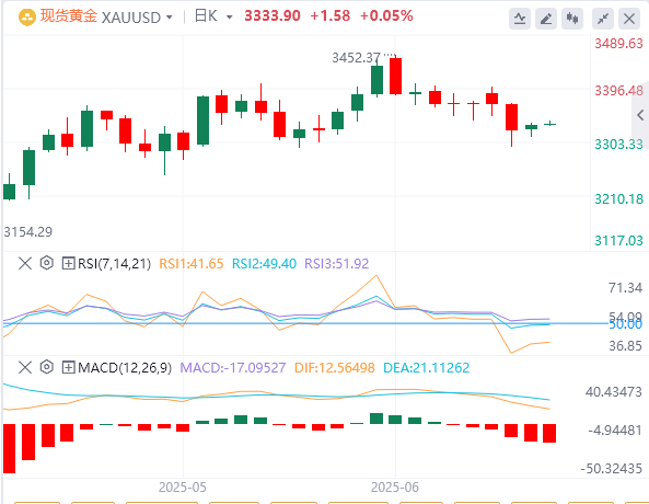 6月26日,北京时间周四亚市早盘,美元指数徘徊在97.49附近。周三,因特朗普宣布下周美方将与伊朗会谈,避险情绪缓解,且市场普遍预期美联储将很快恢复其降息周期,美元指数最终收跌0.27%,报97.71点。基准的10年期美债收益率收报4.2920%,2年期美债收益率收报3.7930%。因市场等待美国GDP和PCE等数据,现货黄金维持震荡,盘中一度逼近3310美元,最终收涨0.30%,收报3333.46美元/盎司;现货白银最终收涨0.91%,报36.24美元/盎司。市场消息称,如果欧佩克+认定有必要,俄罗斯愿在即将于7月6日召开的会议上支持新一轮石油增产。WTI原油收跌0.12%,报64.88美元/桶;布伦特原油收跌0.21%,报67.59美元/桶。
