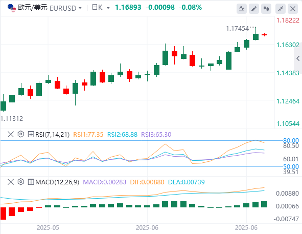 欧元:截止发稿,欧元/美元徘徊于1.1689附近。欧元/美元周四飙升至近四年高点,将涨势延续至连续五天,该货币对自2021年9月以来首次突破1.1700水平。对美联储(Fed)将比预期更早降息的预期推动主要货币对升至年度高点1.1744,然后回落至1.1697,上涨0.33%。技术面上,如果欧元/美元保持在阻力位1.1675–1.1690上方,它将走向下一个阻力位1.1785–1.1800。
