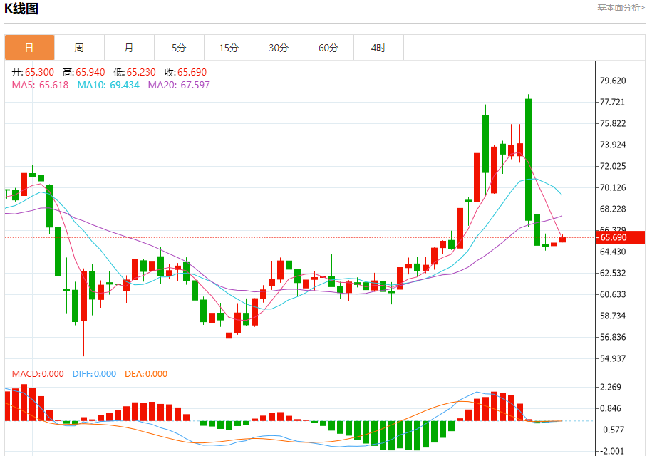 原油市场:截止北京时间20:23,美油上涨,现报65.680,涨幅0.67%。纽市盘前,(原油)在最后一个盘中交易中继续在有限的横盘整理区间交易中波动,表明形成潜在的负面技术形态,完成急剧的看跌修正趋势(看跌旗形),这为在之前的波动后恢复下跌铺平了道路。
