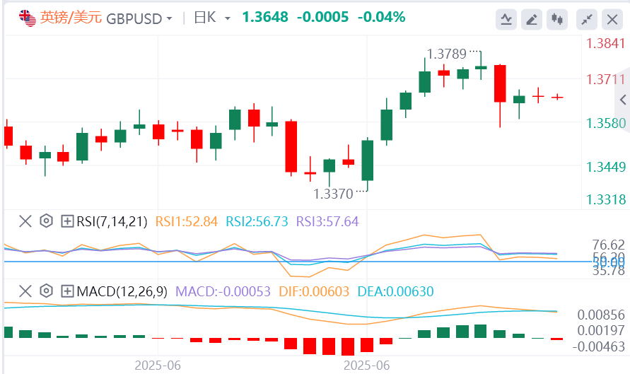 英镑:截止发稿,英镑/美元徘徊于1.3648附近。近期因财政担忧持续施压英镑。谨慎的风险情绪、强于预期的美国非农就业数据以及英国的政治不确定性共同导致英镑处于防御状态,GBP/USD货币对在延续近期涨势方面面临困难。技术面上,如果英镑/美元成功收于50MA上方1.3684,它将向阻力位1.3730–1.3750移动。