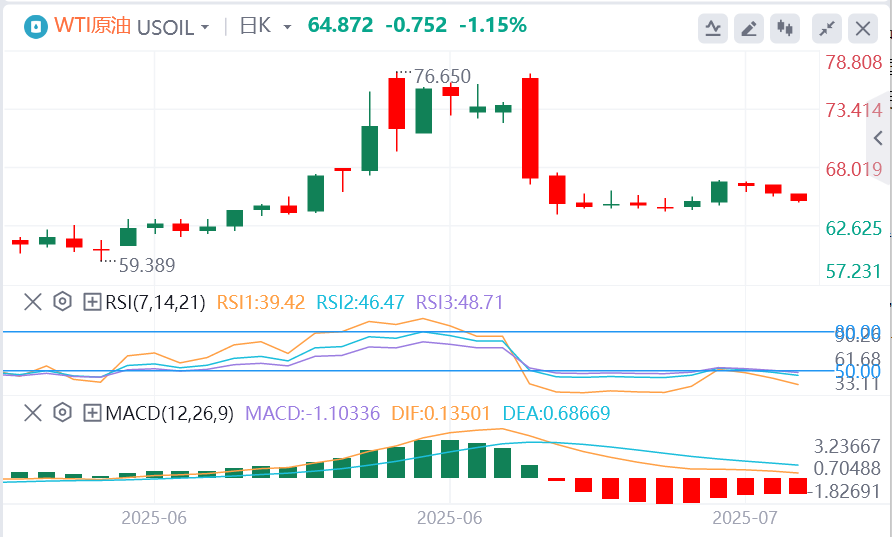 周一亚盘,原油交投66.37附近。欧佩克+八个核心成员国在周六线上会议中同意8月将石油日产量提高54.8万桶,超出此前市场预期的41.1万桶。油价上周五小幅下跌,美国假期交投淡静,市场关注周末的OPEC+会议,以及成员国决定增产的可能性。与此同时,随着为期90天的关税暂停期即将结束,美国关税政策的不确定性再次成为人们关注的焦点。