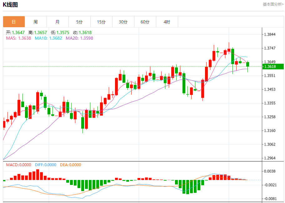 英镑/美元:截止北京时间20:23,英镑/美元下跌,现报1.3619,跌幅0.19%。纽市盘前,(GBPUSD)价格在最后一个盘中交易中下跌,受短期看跌修正浪主导的影响,这降低了积极的势头并限制了恢复尝试。这一下跌是在EMA50下方交易继续的情况下发生的,在短期基础上强化了当前的负面概况。