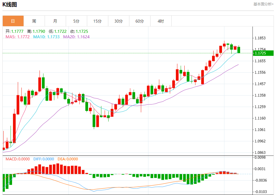 欧元/美元:截止北京时间20:23,欧元/美元下跌,现报1.1724,跌幅0.46%。纽市盘前,(欧元兑美元)价格在达到超买水平后,在(RSI)上出现负面信号的情况下,在最近的盘中水平下跌,以突破1.1745的支撑位,超过EMA50的支撑位,增加了负面压力,并加强了更多修正性下跌的可能性。
