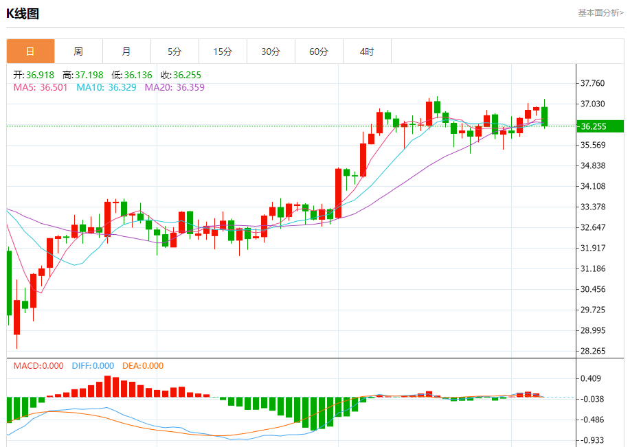 现货白银:截止北京时间20:23,现货白银下跌,现报36.256,跌幅1.82%。纽市盘前,(白银)的价格在最后一个盘中交易中下跌,在(RSI)出现负面信号的情况下,试图获得可能有助于其恢复和再次上涨的积极势头,依靠EMA50的支撑,提供一些积极的势头,帮助它停止了上午的损失,在主要看涨趋势的主导地位及其在排序基础上的次要偏差线旁交易。