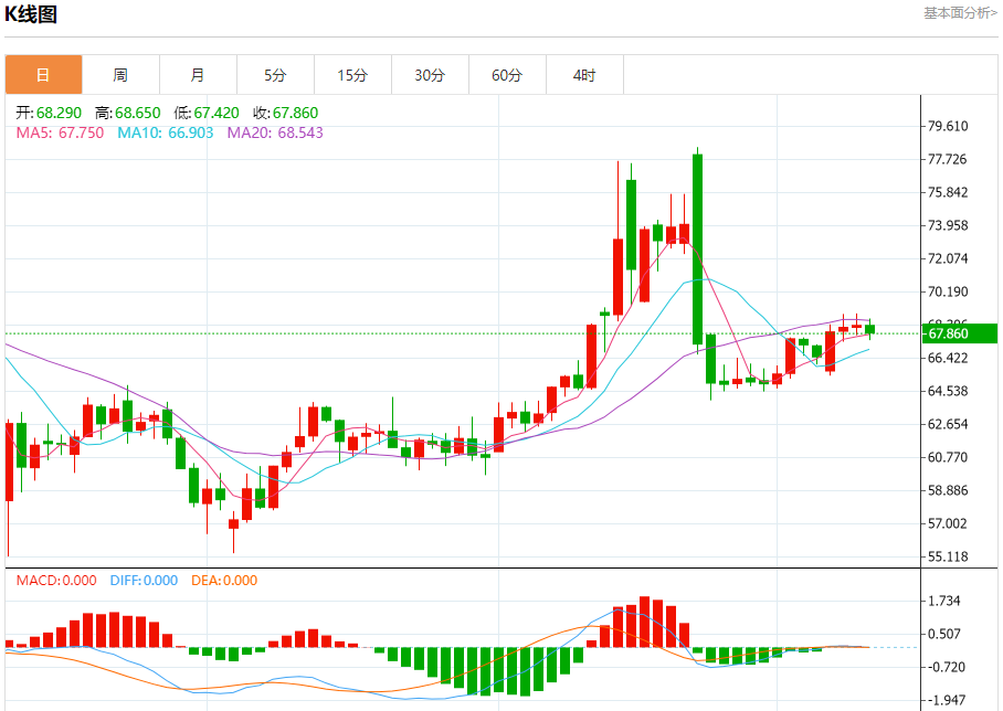 原油市场:截止北京时间20:23,美油下跌,现报67.860,跌幅0.76%。纽市盘前,(原油)价格在最后一个盘中交易中下跌,在(RSI)出现负面信号的情况下,试图获得可能有助于其恢复和再次上涨的积极势头,在短期主要看涨趋势占据主导地位的情况下,沿着偏向线交易,由于其交易高于EMA50而承受的积极压力持续存在,形成动态支撑,防止看跌轨迹。