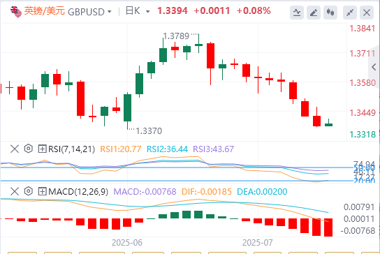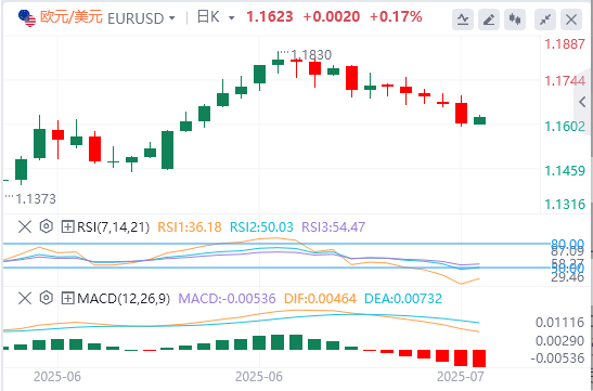 周二,来自美国的数据显示,年度CPI通胀率从5月份的2.4%攀升至6月份的2.7%。在此期间,核心CPI继上个月上涨2.8%之后上涨2.9%。美元指数蓄势待发,升至三周多来最高水平98.70附近。周三早盘,美元指数修正走低,并在98.50附近波动。美国总统唐纳德·特朗普周二晚间表示,通知较小国家美国关税税率的信件将很快发出,并解释说,他的政府可能会为这些国家设定“略高于10%”的关税。继周二华尔街涨跌互现之后,美国股指期货周三早盘下跌约0.3%。