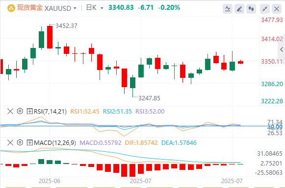 周四亚盘,黄金徘徊在3340.831附近。周三黄金市场经历了一场戏剧性波动。纽市早盘因美元走强,金价一度跌至3319.58美元/盎司的日内低点,但随后彭博一则“特朗普考虑解雇美联储主席鲍威尔”的报道瞬间点燃市场避险情绪,金价狂飙逾50美元,触及3377.17美元的三周高点。
