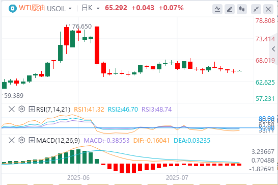 周四亚盘,原油交投65.29附近。美国总统唐纳德·特朗普宣布与日本和菲律宾达成的贸易协议推动了黑金的上涨。周三,欧盟(EU)官员表示,他们正在与美国达成一项贸易协议,该协议将导致对进口到美国的欧盟商品征收15%的广泛关税,避免从8月1日起实施的30%的更高关税。