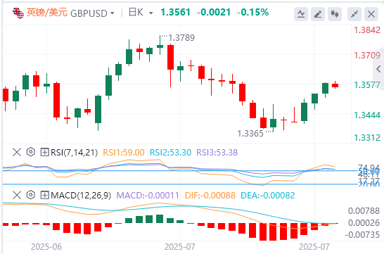 英镑/美元在前三天收盘大幅走高后,稳定在1.3550上方。