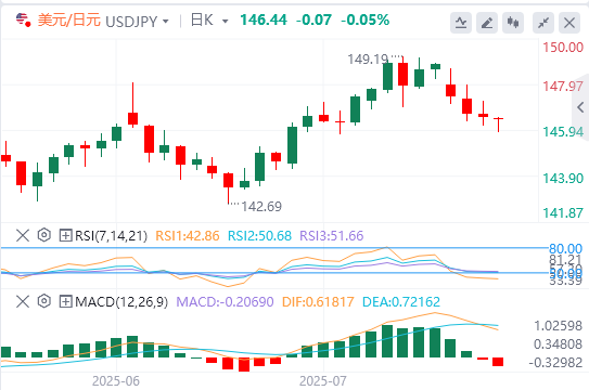 日本7月JibunBank制造业采购经理人指数降至48.8,低于市场预期的50.2。从积极的方面来看,Jibun银行服务业采购经理人指数从本期的51.7升至53.5。美元/日元仍面临看跌压力,欧洲早盘交投于146.00附近,当日下跌超过0.3%。