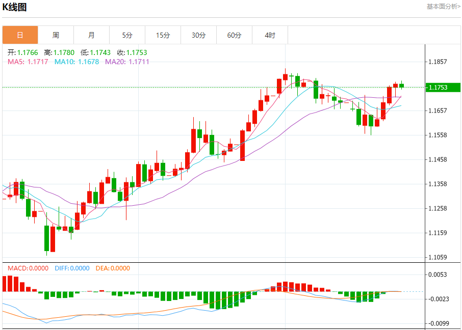 欧元/美元:截止北京时间20:23,欧元/美元下跌,现报1.1755,跌幅0.11%。纽市盘前,(欧元兑美元)的价格在最近的盘中水平下跌,试图获得可能有助于其恢复和再次上涨的积极势头,并试图在(RSI)上卸载一些明显的超买条件,特别是在负面信号开始出现的情况下,在来自其交易EMA50的积极支持的持续中,以及在短期基础上的主要看涨趋势的主导下,及其交易趋势的支持性偏向线。