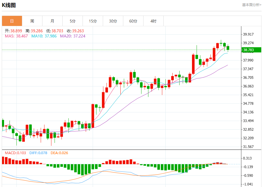 现货白银:截止北京时间20:23,现货白银下跌,现报38.773,跌幅0.66%。纽市盘前,由于关键阻力位在39.10美元的稳定,(白银)价格在最后一盘中下跌,试图获得可能有助于其突破该阻力位的看涨势头,而其交易以EMA50上方的交易为代表的动态支撑的延续,在短期内保持主要看涨趋势的稳定性,在其沿偏置线交易的情况下,随着(RSI)上出现积极信号。