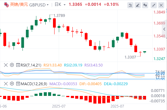 欧元:截止发稿,欧元/美元徘徊在1.1566附近。欧盟与美国的贸易协议推动了美元,压制了欧元,周一欧元/美元录得超过1.30%的跌幅,为2024年12月以来最大。在大西洋彼岸,缺乏经济数据使得欧元表现不佳,跟随美欧贸易协议。交易者等待德国零售销售数据、西班牙、意大利、德国和欧盟的增长数据。此外,交易者还在等待西班牙、意大利、德国及欧盟的HCOB制造业PMI、就业数据和德国及欧盟的通胀数据的发布。与此同时,交易者的关注点集中在美联储即将发布的政策声明上,预计将在周三结束。技术面上,如果欧元/美元保持在1.1550下方,它将走向1.1450–1.1465的支撑位。