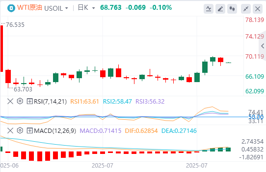 周五亚盘,原油交投68.76附近。油价周四下跌,美国总统特朗普8月1日的关税最后期限迫在眉睫,投资者关注围绕尚未与美国达成贸易协议的国家的不确定性。