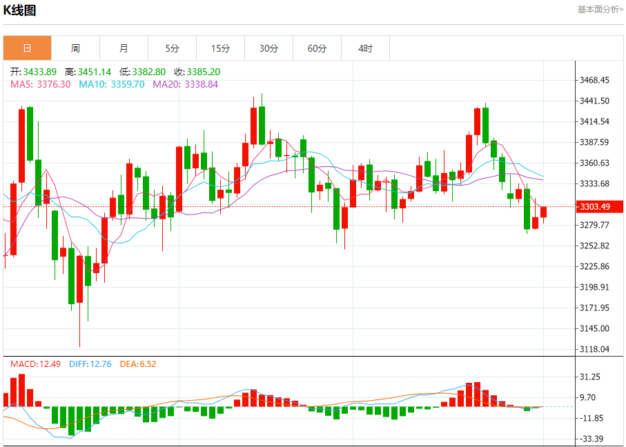 现货黄金:截止北京时间20:23,现货黄金上涨,现报3303.57,涨幅0.41%。纽市盘前,(黄金)价格在盘中最后一交易中下跌,受到短期看跌趋势线交易的影响,表明主导负面势头的强度,此外由于其交易低于EMA50而导致负面压力持续存在,伴随着(RSI)上出现负面信号,在达到与价格相比夸大的超买水平之后。