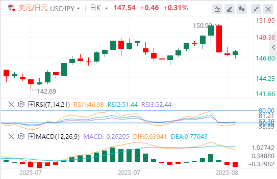 美元/日元在周一未能向任一方向做出决定性走势后,在147.50附近的窄幅通道中波动。