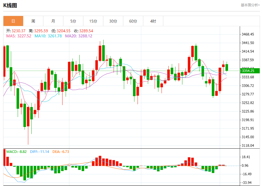 现货黄金:截止北京时间20:23,现货黄金下跌,现报3354.14,跌幅0.57%。纽市盘前,(黄金)价格在最后一个交易日下跌,试图获得可能有助于其恢复和再次上涨的积极势头,同时它成功地卸载了(RSI)上明显的超买条件,为在短期基础上实现更多收益开辟了道路,在强势小牛市的主导下,由于其交易高于EMA50而受到积极支持,从而加强了这种情况的稳定性。