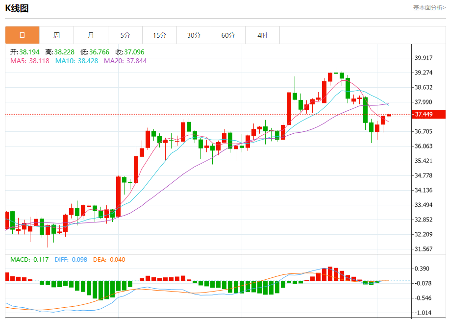 现货白银:截止北京时间20:23,现货白银上涨,现报37.452,涨幅0.18%。纽市盘前,(白银)的价格在最后的盘中水平出现波动,试图摆脱其对(RSI)的明显超买状况,特别是随着负面信号的出现,聚集其积极力量,帮助其摆脱EMA50的负面压力,通过突破短期看跌修正趋势线来恢复。