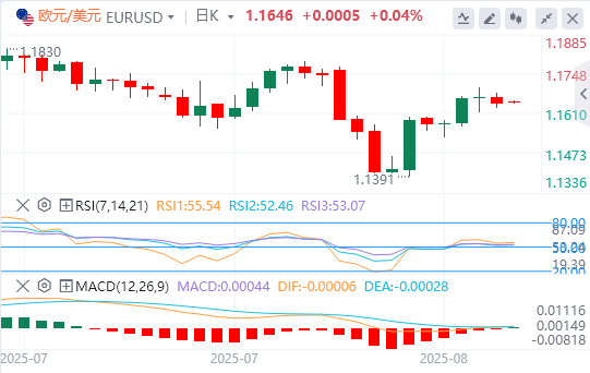 美元指数:截止发稿,美元指数徘徊在98.23美元。美元上周五走强,但由于经济数据疲软导致交易商对今年更多降息的可能性进行定价,同时投资者也在评估美国总统特朗普对美联储的提名,美元周线下跌。自公布的7月份就业报告显示雇主当月增加的就业岗位少于预期,同时前几个月的就业增幅也被大幅下调以来,美元已经下跌。其他数据,包括疲软的楼市市场和服务业数据,也都表明经济正在放缓。技术面上,如果美元指数成功攀升至98.50上方,它将向50的98.90移动平均线移动。RSI处于温和区域,如果出现正确的催化剂,还有很大的动力空间。