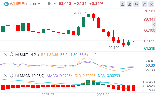 周二亚盘,原油交投63.41附近。由于俄罗斯无视美国结束与乌克兰战争的最后期限,WTI收复了一些失地。石油交易商为周二晚些时候的美国石油协会(API)原油库存报告做好准备。美国和俄罗斯在阿拉斯加的潜在会晤将于周五受到密切关注。