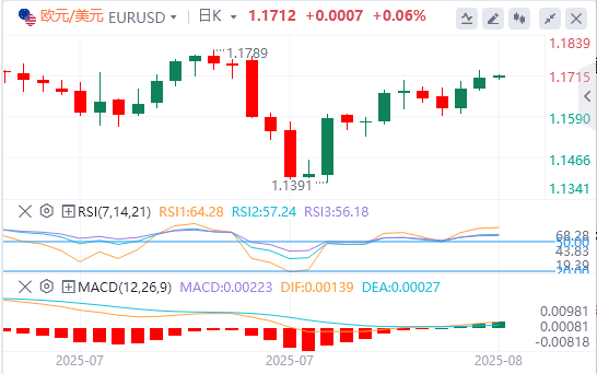 欧元:截止发稿,欧元/美元徘徊在1.1712附近。周三欧元/美元汇价一度突破了1.1700关口,并在1.1730附近刷新了两周以来的最高点。美国7月消费者物价指数(CPI)数据温和,未见特朗普关税对经济造成显着影响,增强了市场对美联储9月降息的预期,进而推动欧元上涨。尽管市场预期美联储将放宽货币政策,但交易员对美联储官员的讲话保持关注,短期内汇价略有回调。技术面上,如果欧元/美元成功收于阻力位1.1685–1.1700上方,则将向下一个阻力位1.1800–1.1815移动。