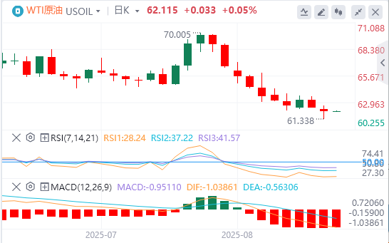 技术面:技术上,由于价格低于200日均线和50均线,且基本面偏向看跌(供应增加、需求疲软以及俄罗斯出口稳定),WTI原油可能进一步下行。除非价格能够回升至50均线65.86美元之上,否则技术面走势将支撑油价持续走弱,短期内很可能跌至60美元以下。