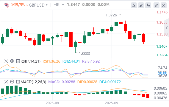 英格兰银行(BoE)行长安德鲁·贝利(AndrewBailey)在接受《西米德兰兹杂志》采访时表示,利率还有进一步下降的路要走,并补充说劳动力市场出现了一些疲软,同时消费者也持谨慎态度。英镑/美元周三下跌超过0.5%,触及9月初以来的最低水平1.3430。周四欧洲时段,该货币对在1.3450附近处于盘整阶段。