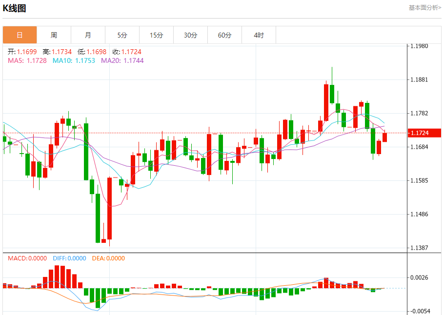 欧元/美元:截止北京时间20:23,欧元/美元上涨,现报1.1724,涨幅0.19%。纽市盘前,(EURUSD)的价格在上一次盘中交易中下跌,正如我们早间报告中预期的那样,相对强弱指标开始形成负背离,并出现负面信号,对价格产生下行压力,同时关键阻力位1.1730保持稳定,价格继续低于其EMA50均线,并在短期内处于看跌修正波的主导下。如果价格突破当前阻力位,近期内价格反弹的可能性仍然存在。