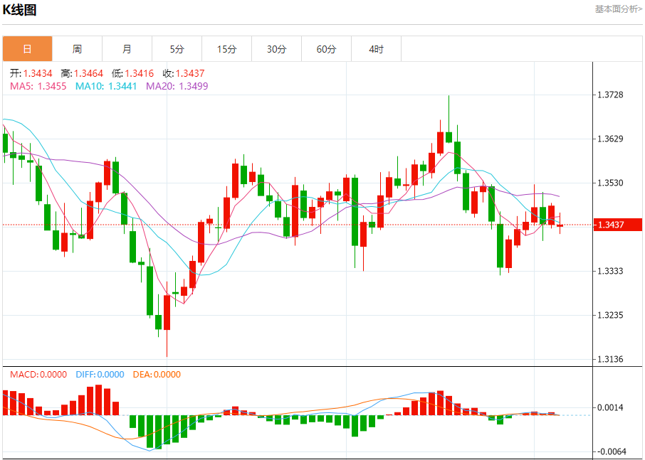 英镑/美元:截止北京时间20:23,英镑/美元下跌,现报1.3438,跌幅0.32%。纽市盘前,(GBPUSD)价格在其最后的盘中水平下跌,在主要看跌趋势占主导以及其在短期内沿支撑趋势线交易的背景下,依靠其EMA50支撑,这帮助其企稳并反弹以试图收复部分早期损失,同时相对强弱指标开始形成负背离,在达到超买水平后,与价格走势相比被夸大,由此出现的负面信号表明价格周围的正向动能疲软。