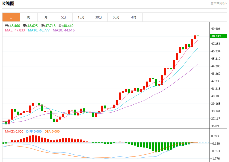现货白银:截止北京时间20:23,现货白银下跌,现报48.446,跌幅0.09%。纽市盘前,(白银)价格在最后一个盘中交易中稳定下来,此前它在今天的早盘交易中下跌,以收集收益,并根据相对强度指标卸载其超买条件,作为价格势头恢复和再次上涨的积极信号,主要看涨趋势在短期内占主导地位,并沿着趋势线交易,利用其在EMA50上方交易所代表的动态支撑,加强了其恢复的机会。
