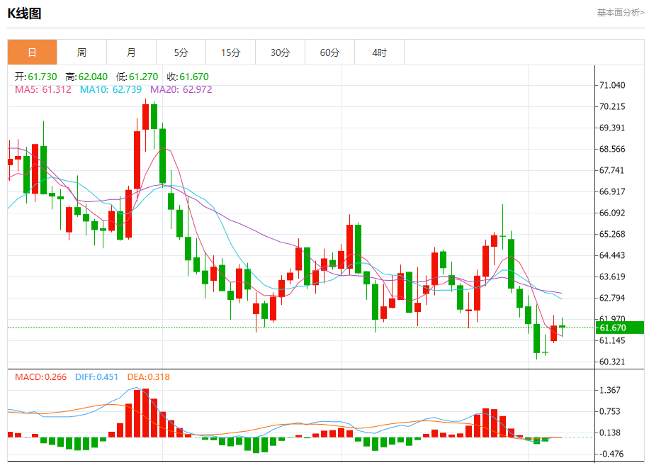 原油市场:截止北京时间20:23,美油下跌,现报61.630,跌幅0.10%。纽市盘前,原油价格在最近的盘中交易中波动明显,看涨的修正波占主导地位,以弥补此前的部分损失,利用短期内有限的复苏努力。然而,由于其交易低于EMA50,除了在形成负背离后相对强度指标上出现负面信号之外,在达到与价格走势相比的严重超买水平后,负面压力仍占主导地位,这增加了未来几个交易日中更多下行的可能性。