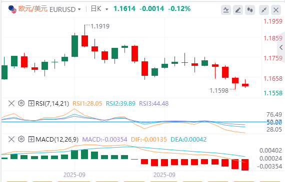 欧元/美元在周四欧洲交易时段保持弱势,向1.1600下滑。欧洲央行将在当天晚些时候发布9月份政策会议的会议纪要。